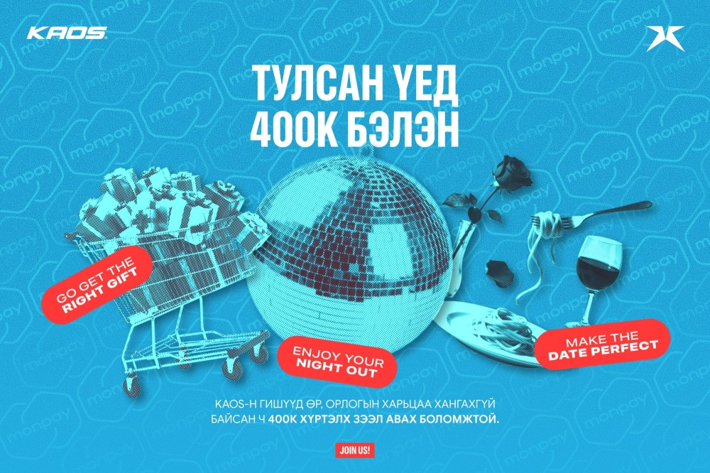 KAOS-н гишүүн бүр 400,000₮ хүртэлх зээлийн эрхтэй. Энэхүү зээл нь өр, орлогын харьцаа хангаагүй байсан ч авах боломжтой. Цаасан шалгуураас илүү амьдралын бодит нөхцөлд тохирсон уян хатан энэ шийдэл тулсан үед яг тохирно! 505 дугаараа ашиглан MonPay апп-аар хялбархан аваарай.