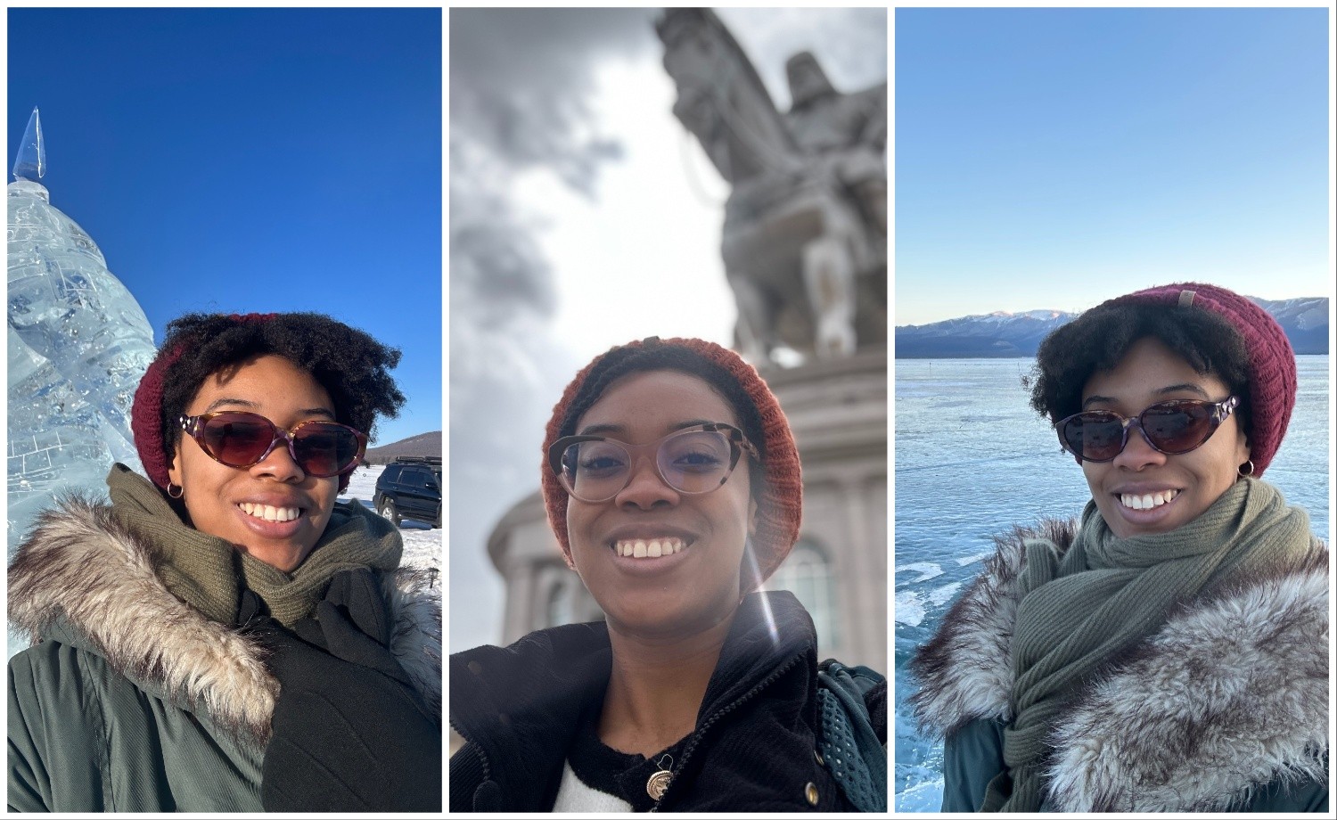 Хүйтэн цаг агаарт ч мөн адил дасан зохицох шаардлагатай байсан. Нью-Йоркт цас ордог ч Монгол шиг хүйтэрдэггүй. Энд өвөл -20 хэм, заримдаа түүнээс ч илүү хүйтэрдэг. Аз болоход Монголд өвлийн дулаан хувцас маш элбэг. Би Нарантуул зах, Сандэй плаза зэрэг газраас сарлаг, тэмээний ноос, ноолууран хувцас олж авсан.