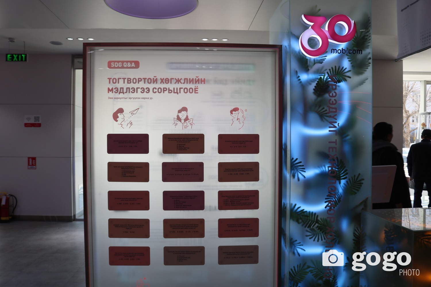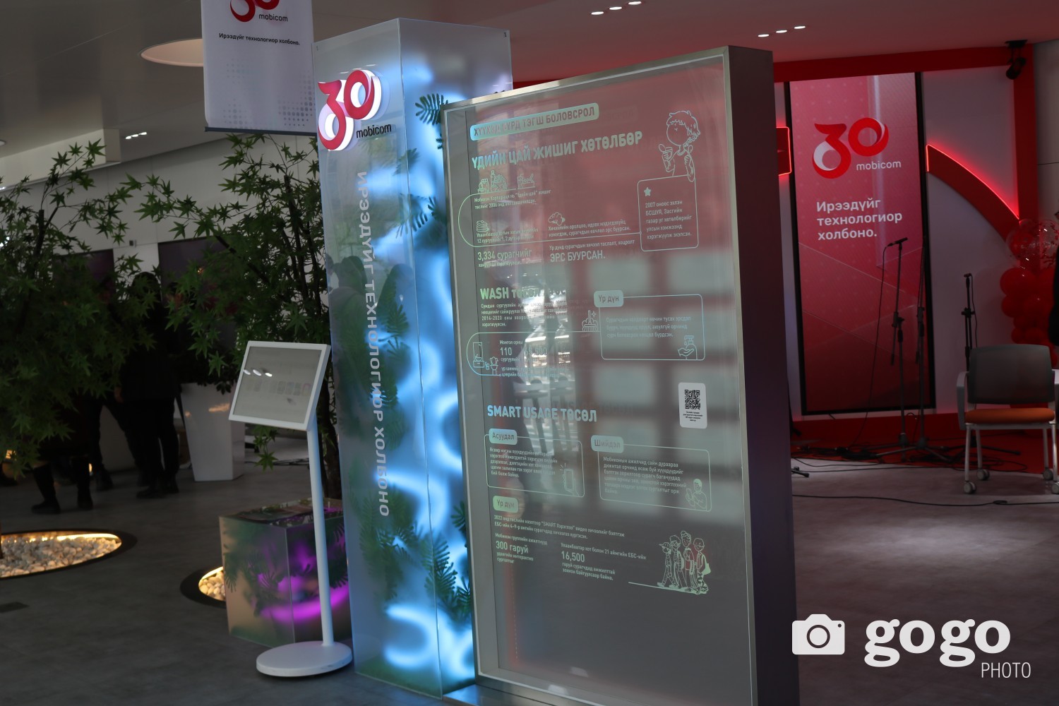 Үзэсгэлэнгийн төв хэсэгт Мобикомын 30 жилийн хугацаанд хэрэгжүүлсэн тогтвортой хөгжлийн санаачилгууд буюу тогтвортой хөгжлийн булан төслүүдийг харуулсан хэсэг байрлаж байна.