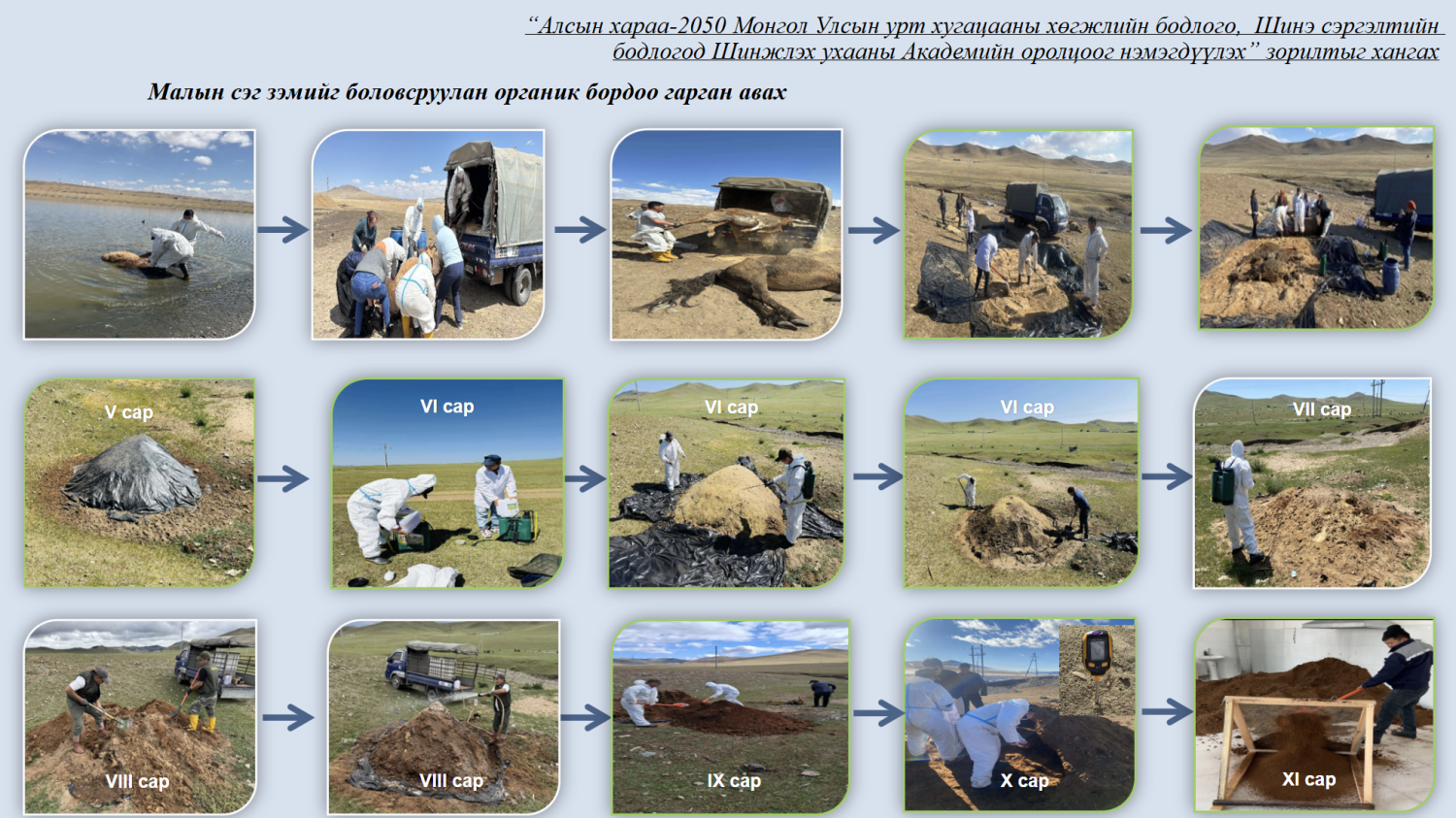 Эрдэмтэн судлаачдын зорилго, үүрэг бол нийгэмд тулгамдаж буй асуудлуудад технологийн оновчтой шийдэл гаргах юм. Тиймээс манай судлаачдын баг 2023-2024 онуудад малын сэг зэмийг боловсруулан органик бордоо хийх туршилтыг амжилттай хийж гүйцэтгэлээ.