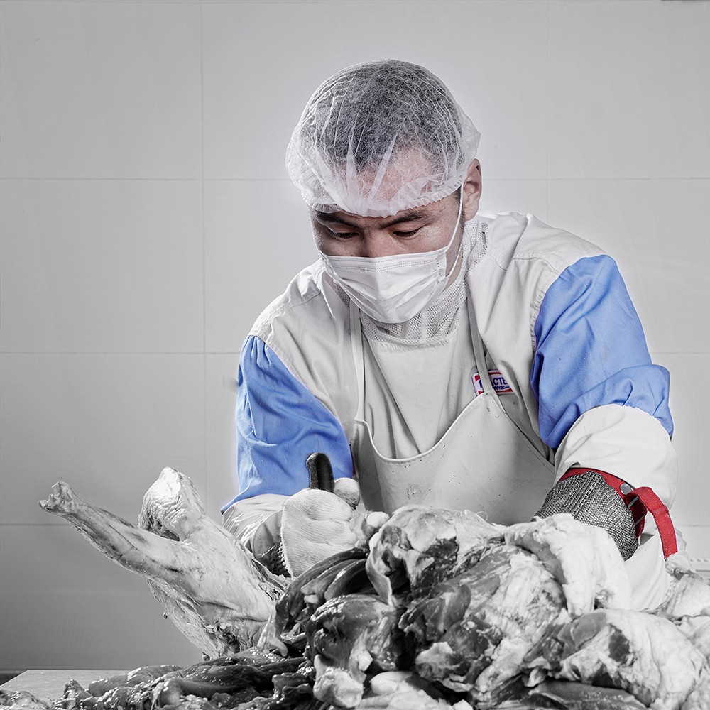Шоо дөрвөлжин татсан мах: Махыг машинаар бутлаагүй, гар аргаар шоо дөрвөлжин татсан тул шүүслэг чанараа алддаггүй.